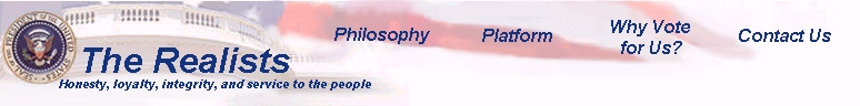 The Realist Party a Philosophy a Platform a Why Vote for Us? a Issues: Abortion Capital Punishment Defense Drugs Education Energy Crisis Gun Control HealthCare Immigration Social Security a Contact Us